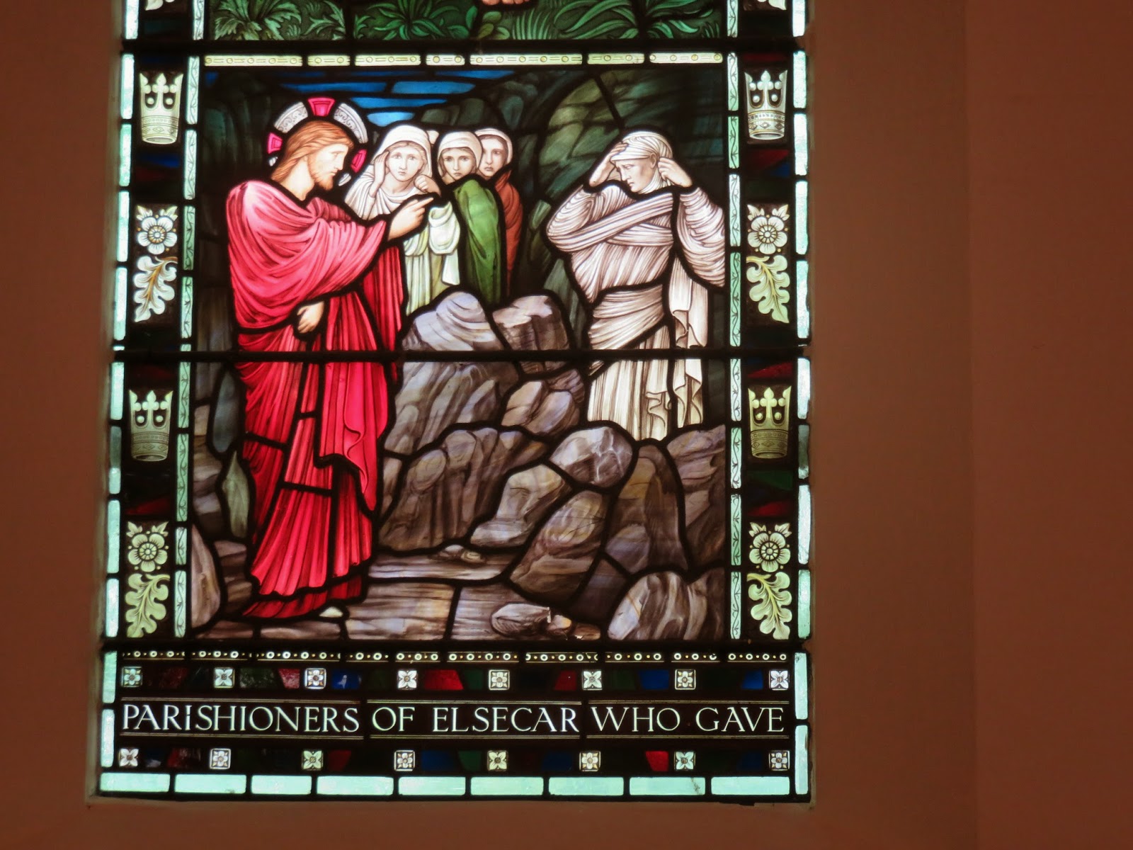 But the real treasure is inside. 4 stunning windows to commemorate World War 1 in Elsecar by William Morris no less. The colours are very William Morris - so rich and deep and green.